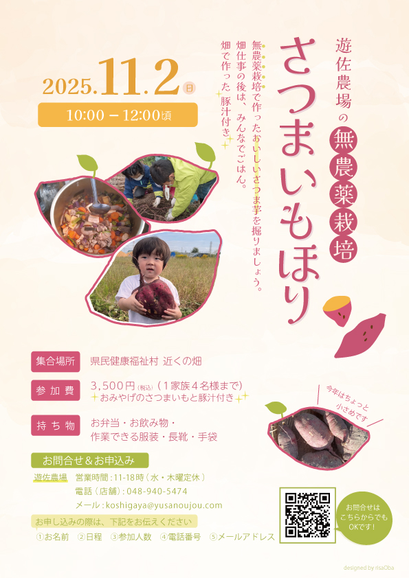 申込方法:①お名前 ②参加人数(大人●名子供●名) ③電話番号
